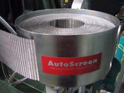 AutoScreen automatic screenchangers are available in size ranges from 1-1/4" (30mm) to 8" (200 mm). Stainless steel filter cloths are available in a variety of grades in a standard 20 or 40 meter rolls.