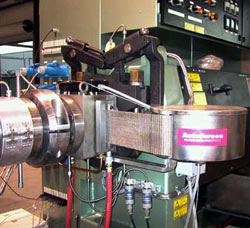 The compact AutoScreen is mounted between the end flange of the extruder and the die. Up-stream and down-stream adapters will have been machined either by you or by AutoScreen, if requested.